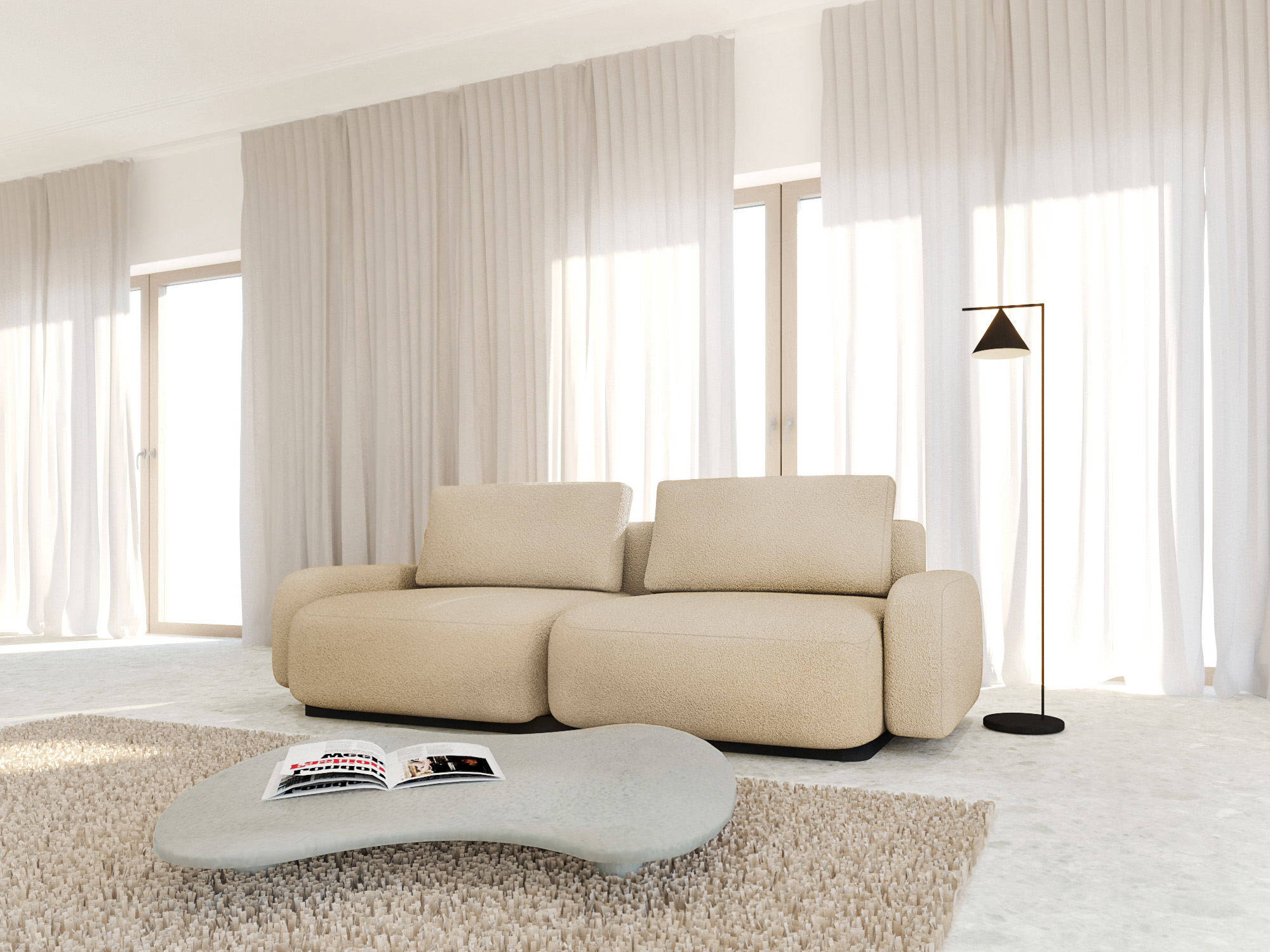 A Boble egy organikus formastílusú, finom és légies bútordarab. A lekerekített párnákat a természet ihlette, amely az energetikailag legelőnyösebb formák létrehozására törekszik. A kanapé minden modulban külön nagyméretű ágyneműtartót tartalmaz, és egyszerűen kanapéággyá alakítható.