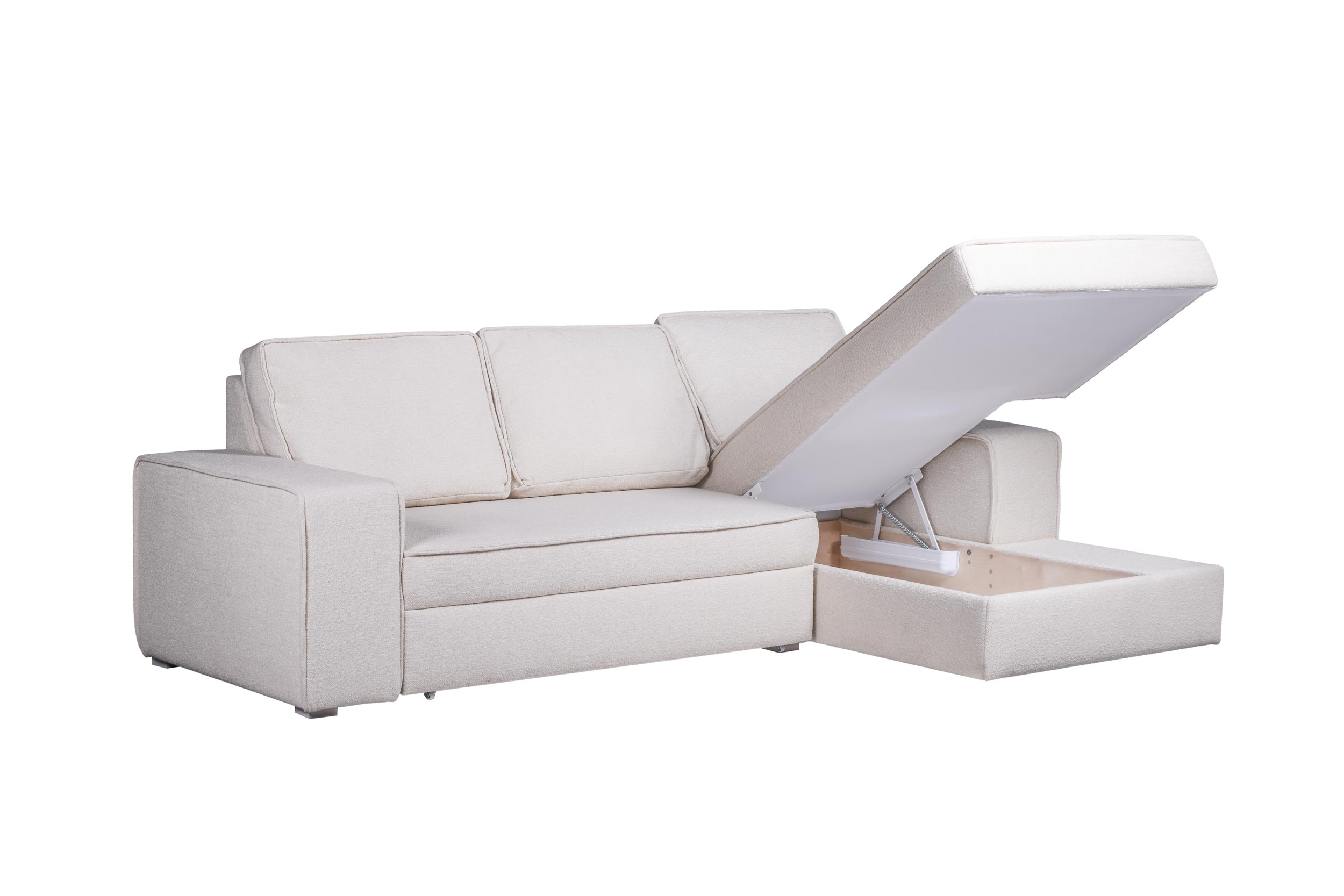 Praktikus kinyitható sarokkanapé ágyneműtartóval, mely otthonosságot és meleget kölcsönöz a belső térnek.